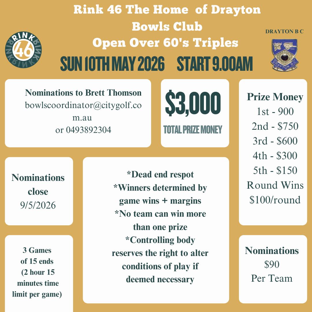 Rink 46 (Home of the Drayton Bowls Club) was established in 1946. We have a rich history of producing top-tier players who have gone on to represent District sides with pride.